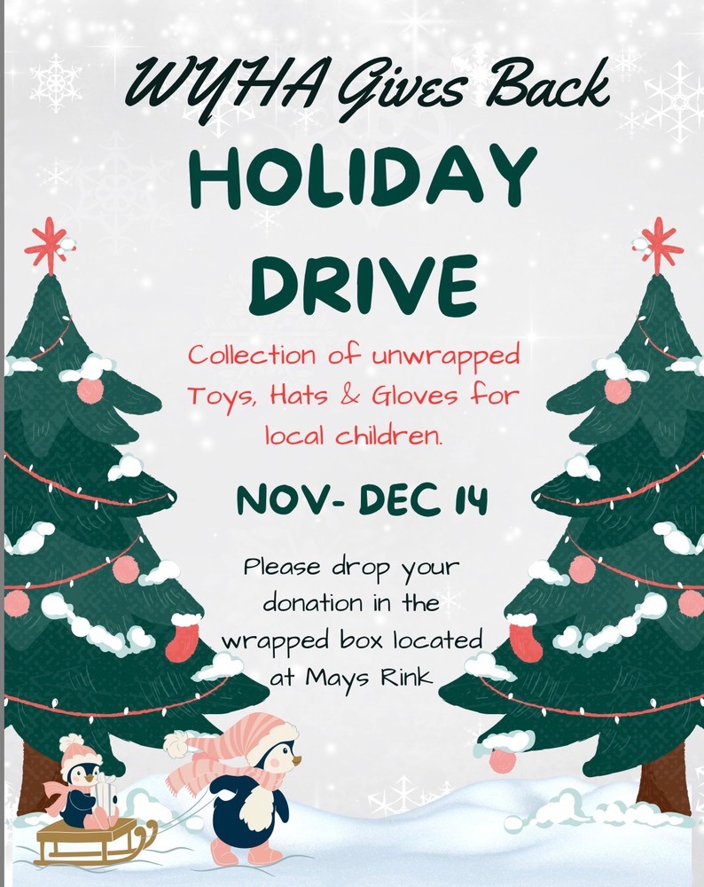 WYHA is collecting unwrapped toys, hats, and gloves for local children through 12/14. Donation box located at Mays Rink, Taft!
